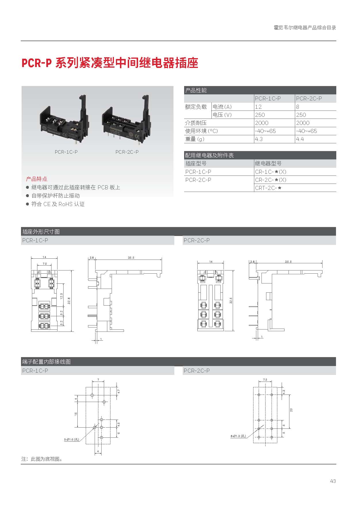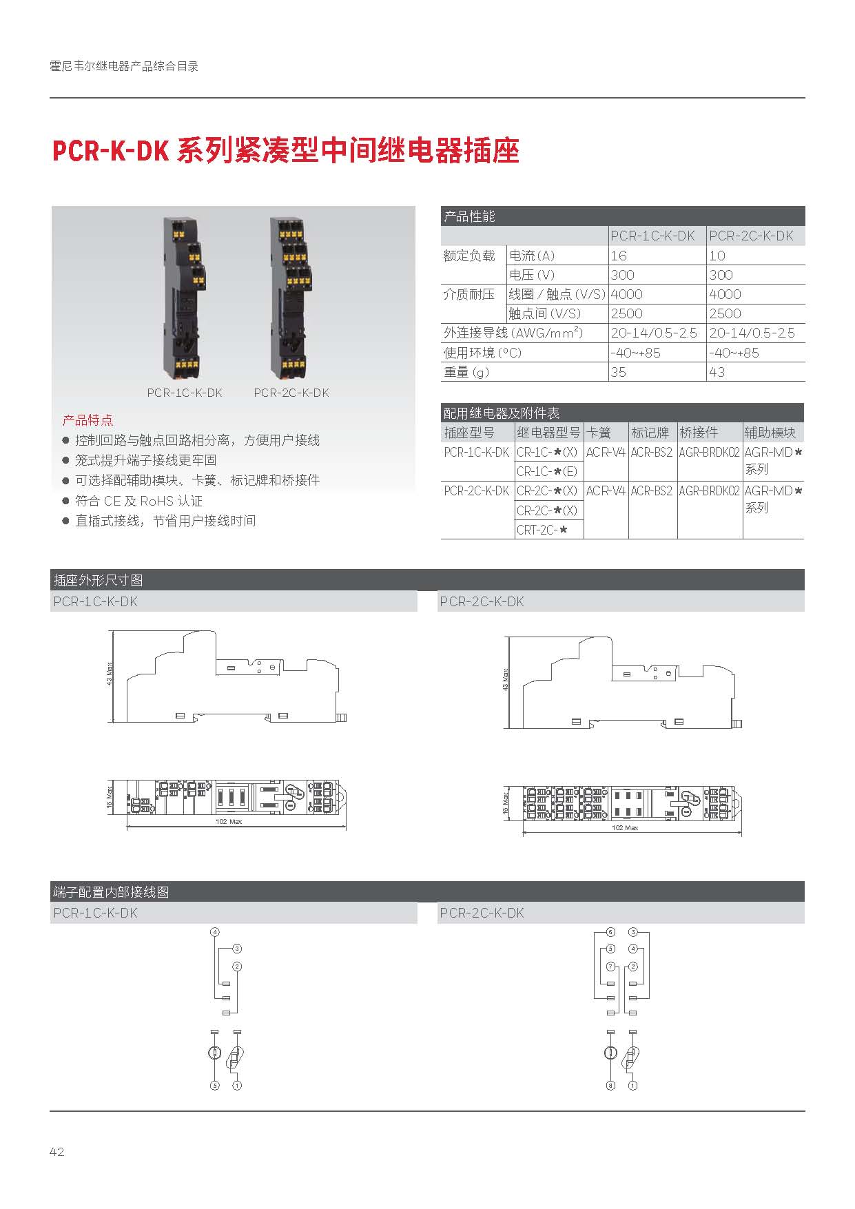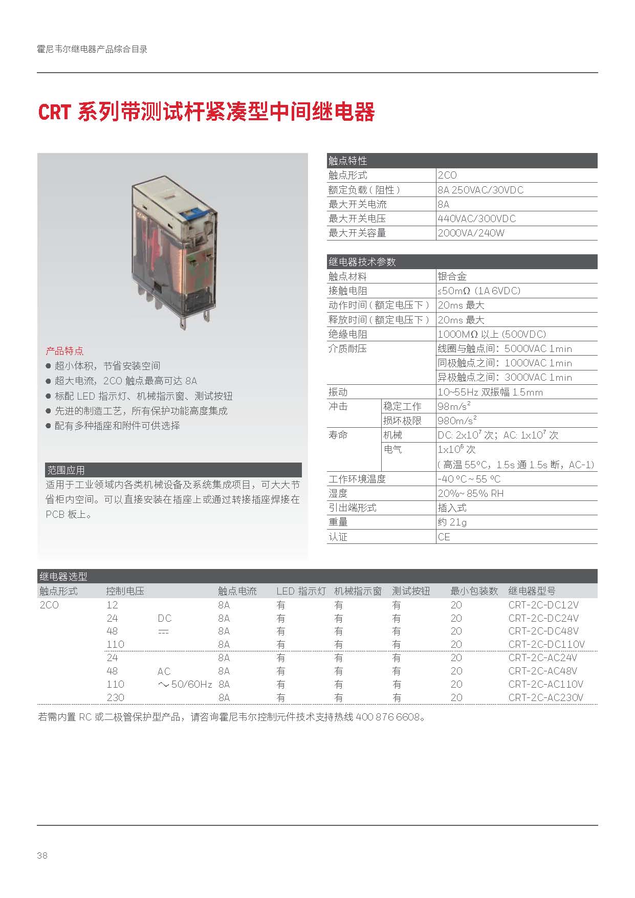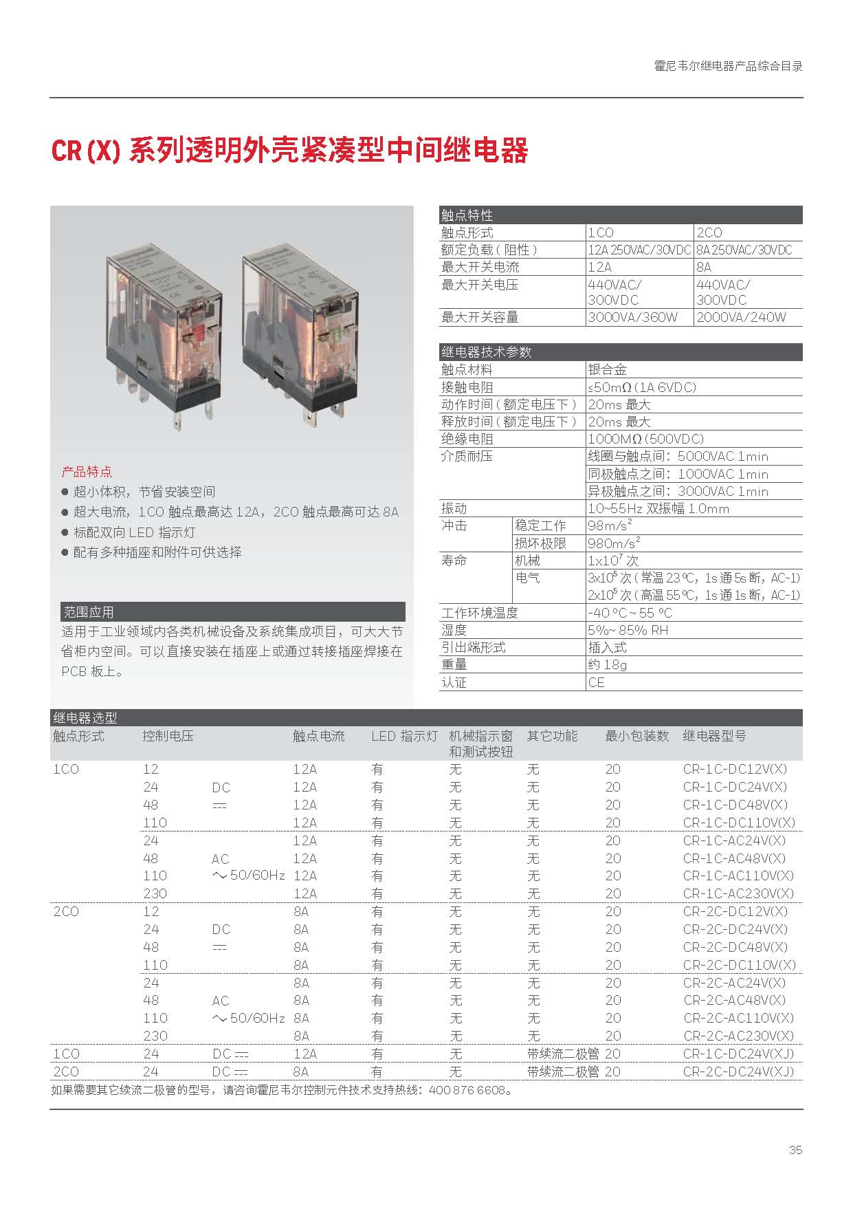 霍尼韋爾繼電器CR系列中間繼電器CR-2C-DC12V(X)